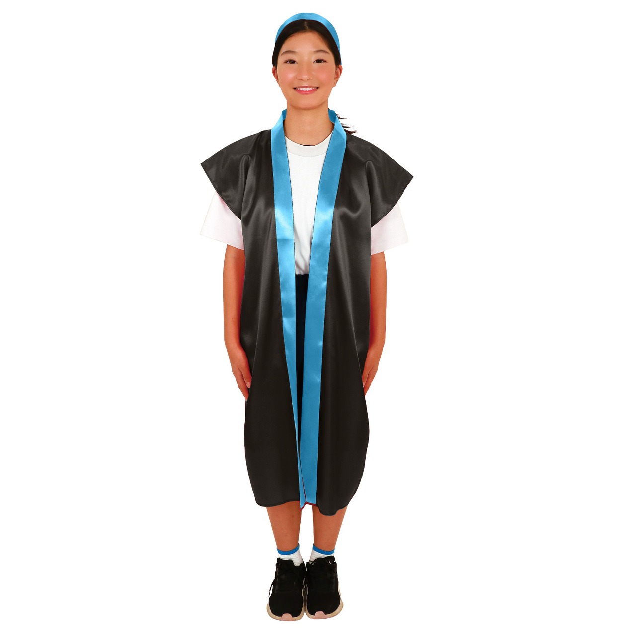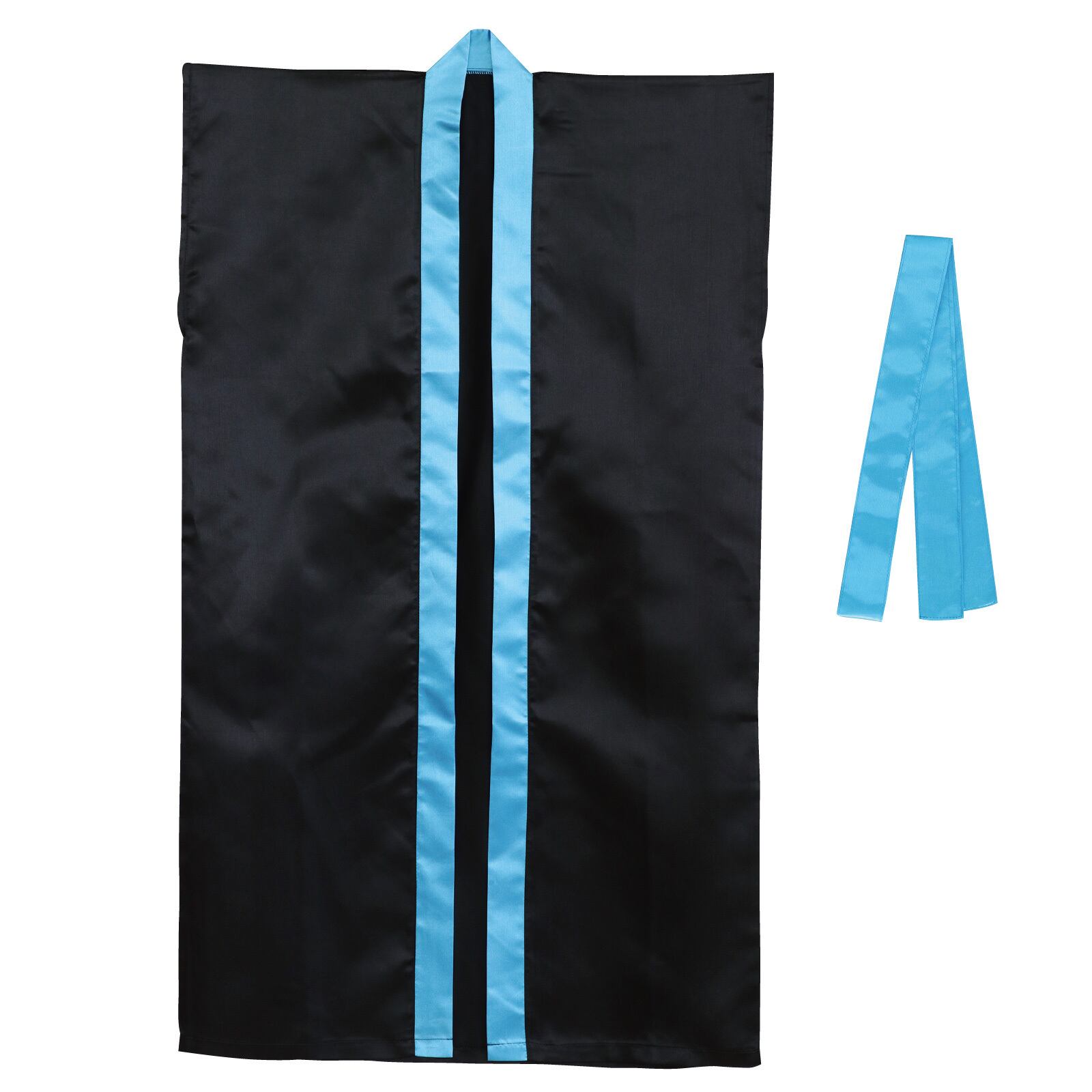 サテンロングハッピ 黒(襟青)J、S、M、L