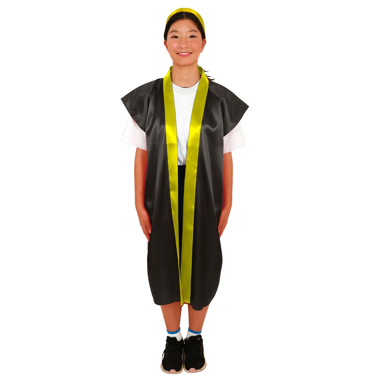 サテンロングハッピ 黒(襟黄)J、S、M、L