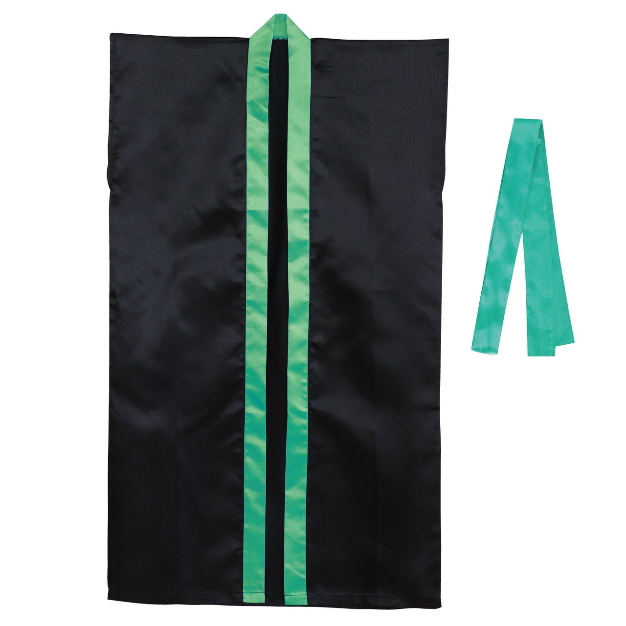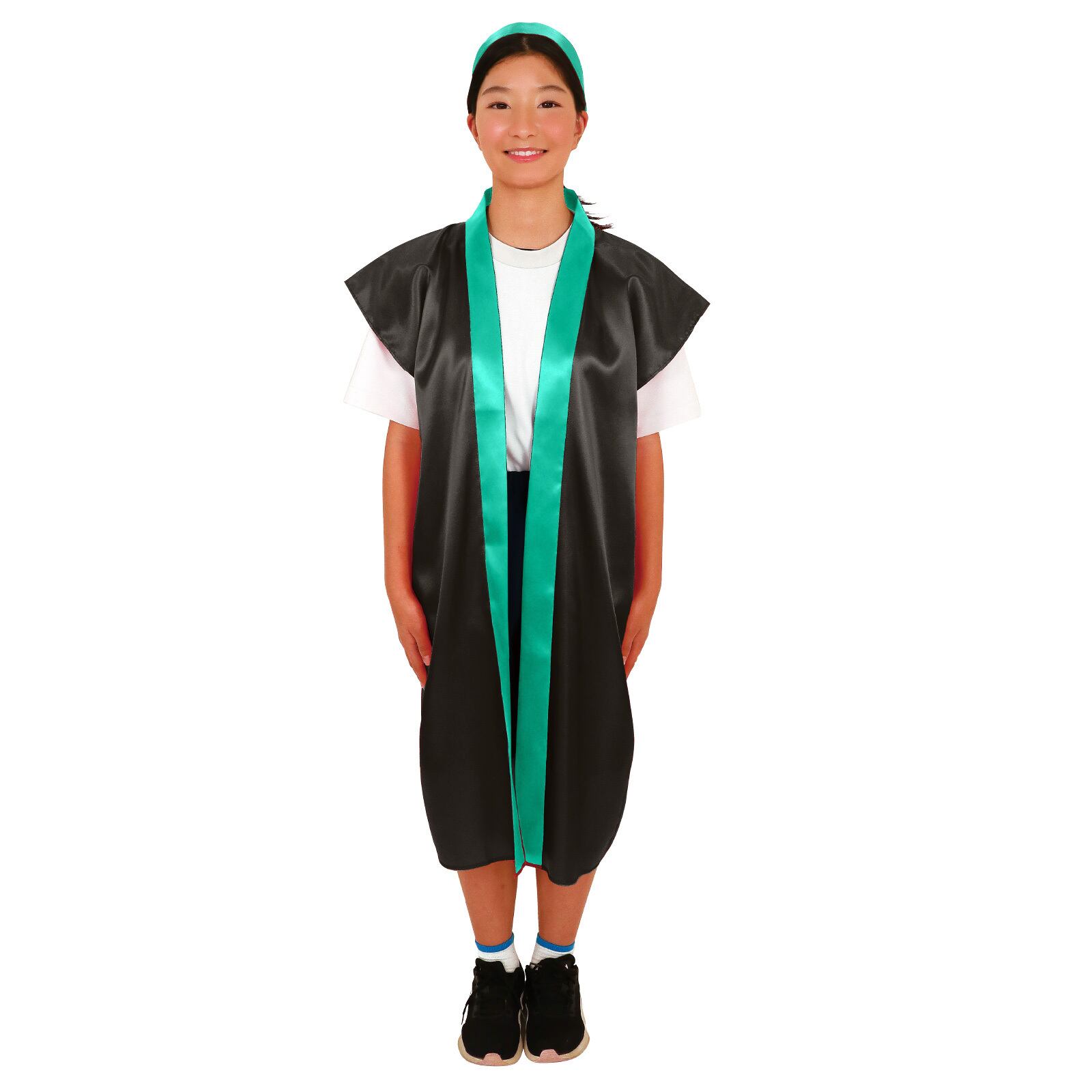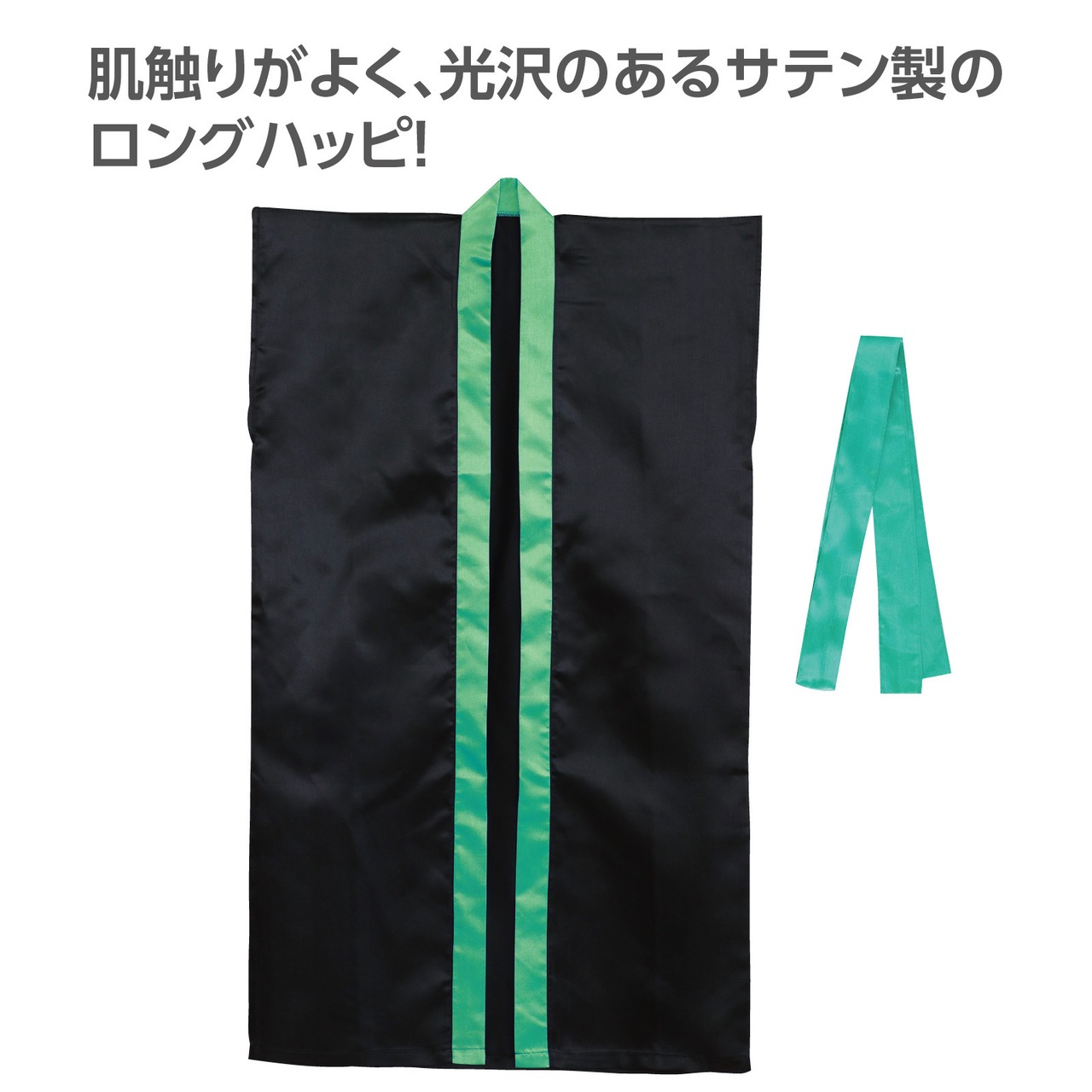 サテンロングハッピ 黒(襟緑)J、S、M、L