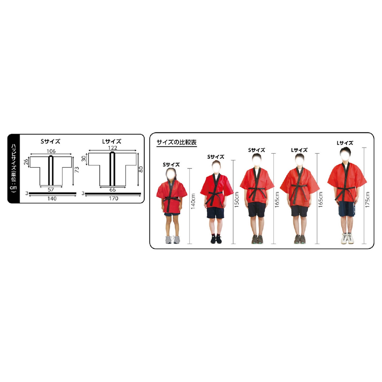 カラー不織布ハッピ 黒(襟赤)