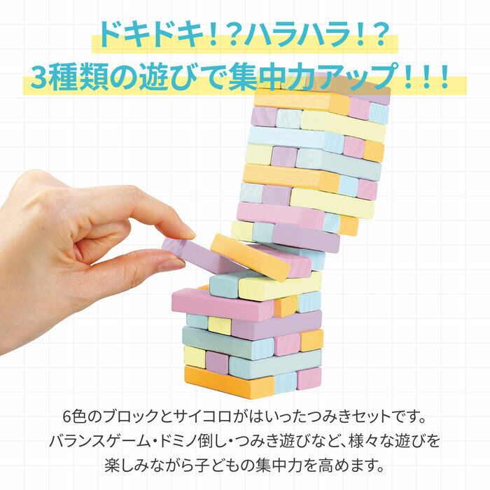 指先を使って倒れないように慎重に遊ぶことで、器用さや集中力を身につけることができます。