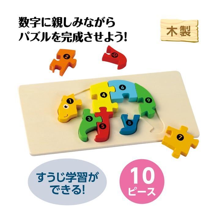 カラフルな10個のピースに数字が印刷された、厚みのある木製のパズルです。