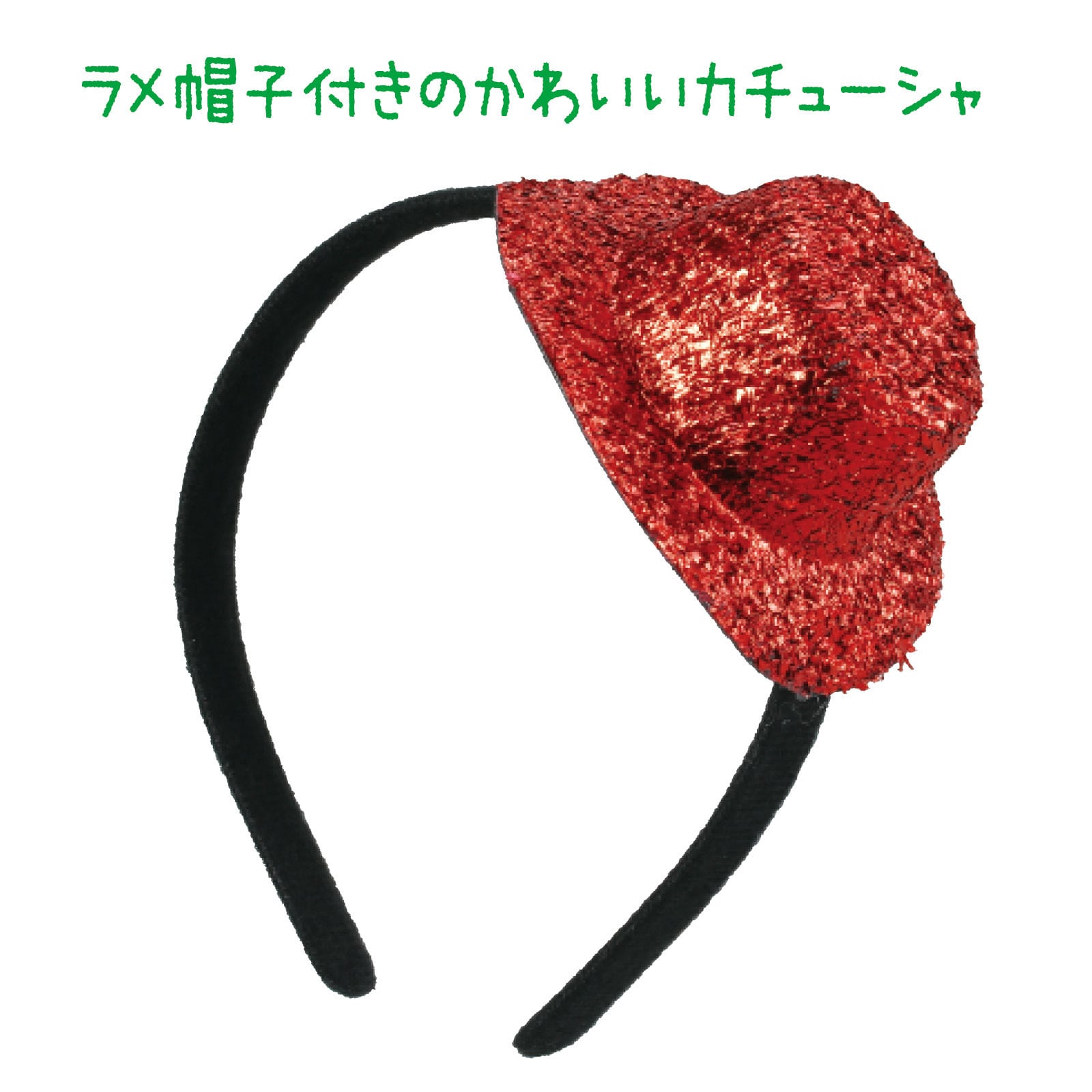 キラキラ帽子付カチューシャ(赤、青、黄、黒、シルバー)