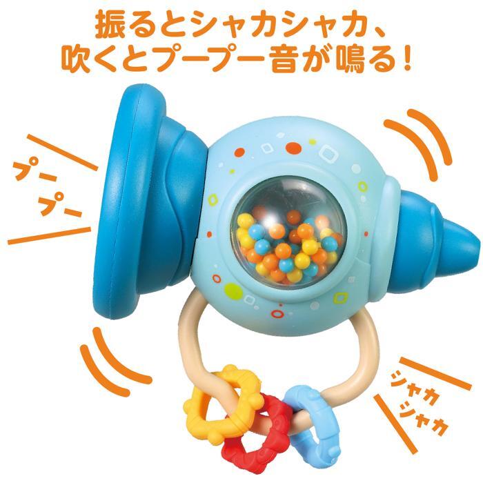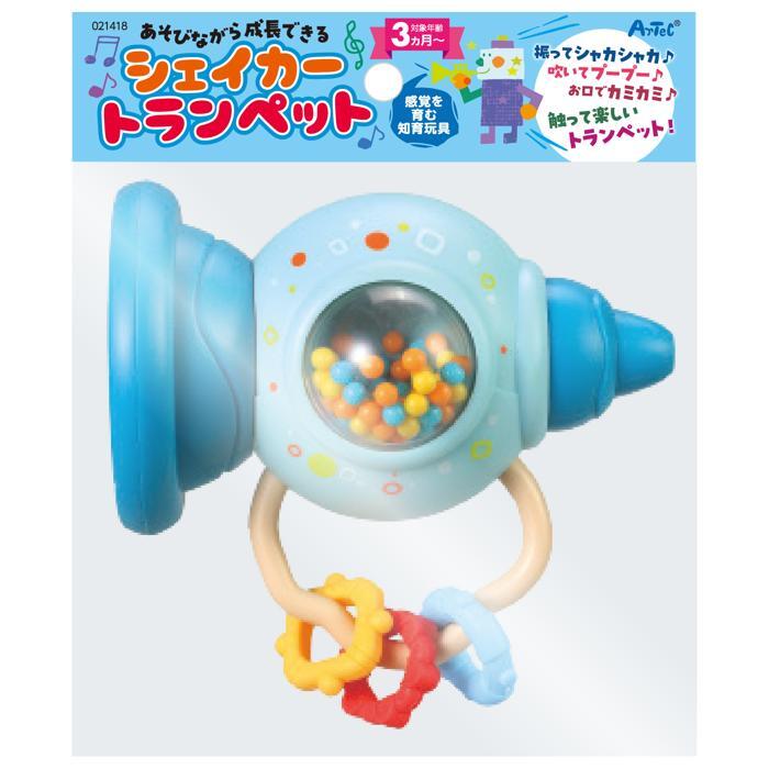 振ってシャカシャカ!吹いてプープー!触っても楽しいトランペット!くすみカラーがかわいいトランペット型のおもちゃ!