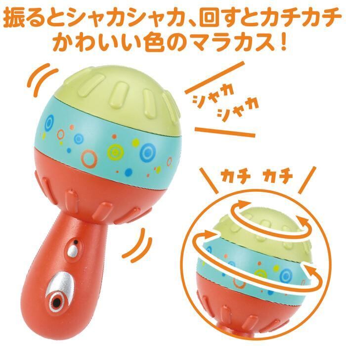 振るとシャカシャカ、回すとカチカチ!かわいい色のマラカス!