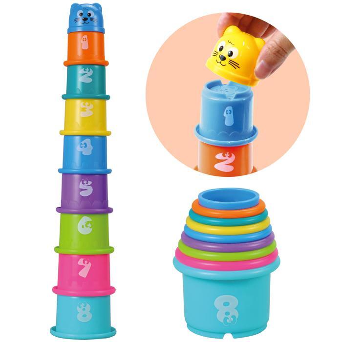 遊びながら成長できる乳幼児玩具です。このおもちゃは、コップを積み重ねたり、並べたりすることで、手先の器用さや集中力を養います。また、アルファベットや数字を自然に覚えることができ、幼児期の学習にも役立てることができます。コップはスタキングが可能で、コンパクトに収納できるため、持ち運び片付けが簡単です。家庭での遊びはもちろん、保育園や幼稚園での知育活動にも適したおもちゃです。