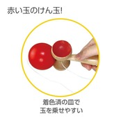 赤色の玉のスタンダ−ドなタイプのけん玉です。着色済なので、そのまますぐに遊べます。