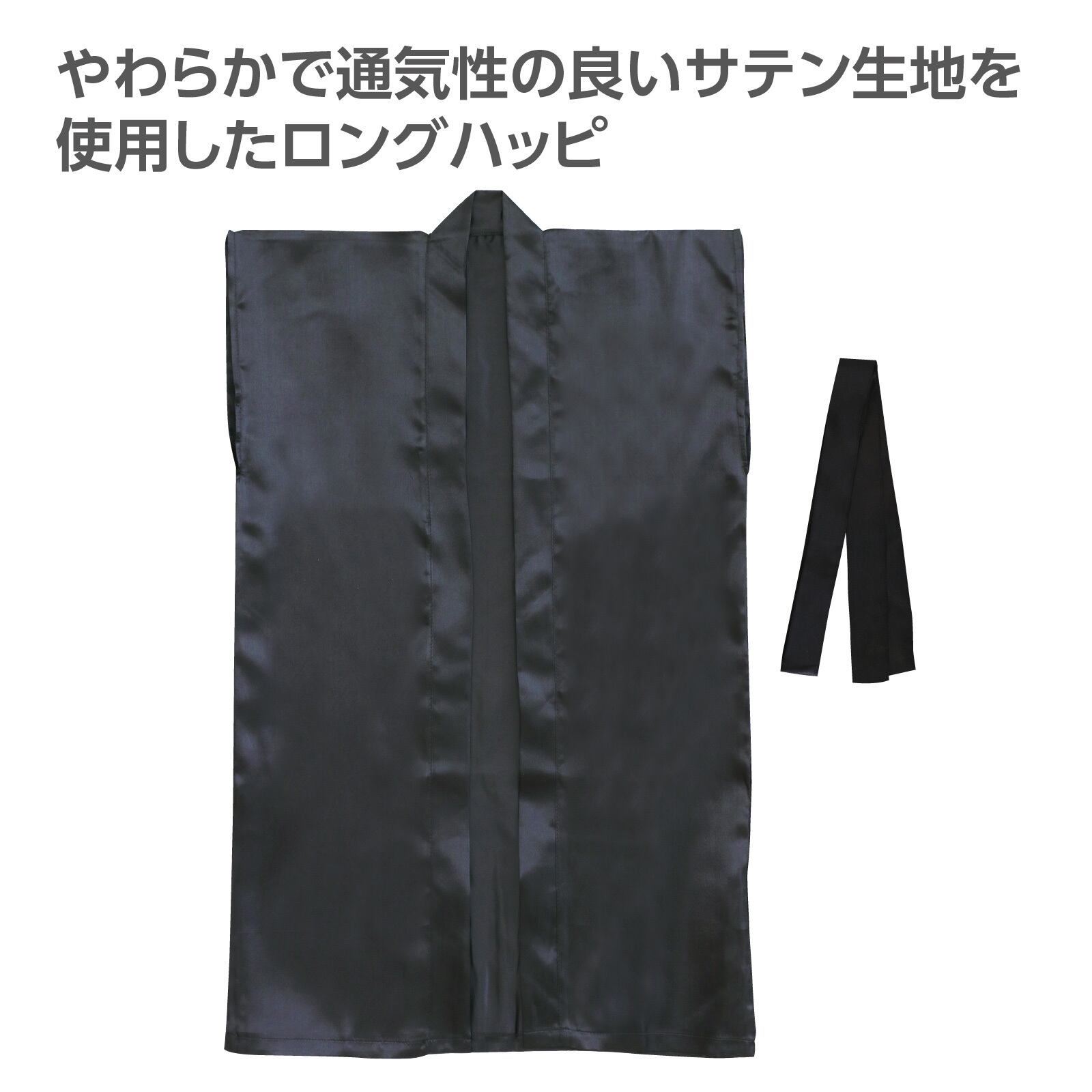 やわらかで通気性の良いサテン生地を使用したロングハッピ