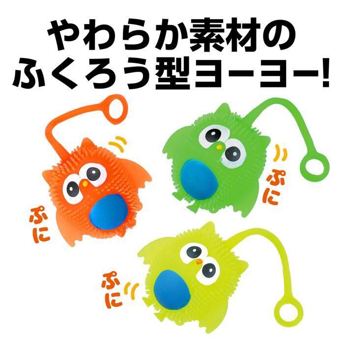 カラフルふくろうヨーヨーの12個組の什器セットです。商品の色は取り混ぜになりますので均等に入っていない場合がございます。(橙、黄、緑)やわらかい素材で作られているので、小さなお子さまでも安心して遊べます。手に持って遊ぶだけでなく、ストレス解消や気分転換にも最適!軽量で持ち運びも簡単なので、お友達や家族と一緒にどこでも楽しめます。
