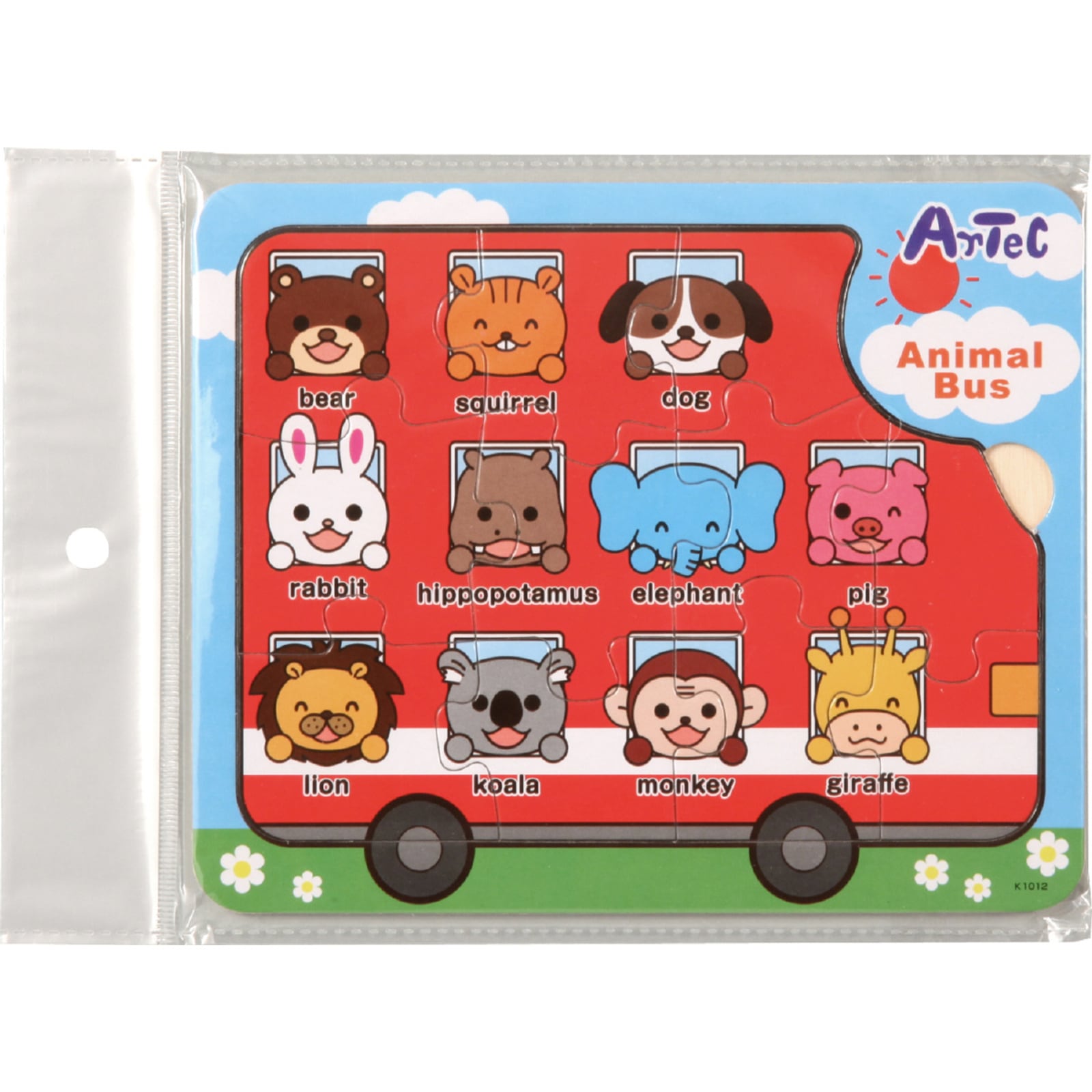バスに乗った動物の木製パズル!