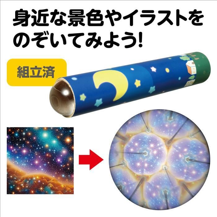 身近な景色をバックにしてのぞいてみるとその景色が万華鏡のように見える不思議なスコープです。