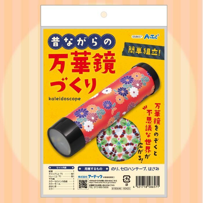昔懐かしい万華鏡を作るキットです。組立が簡単ですぐに遊ぶことができます。組立時間目安:5分必要なもの:のり、セロハンテープ、はさみ