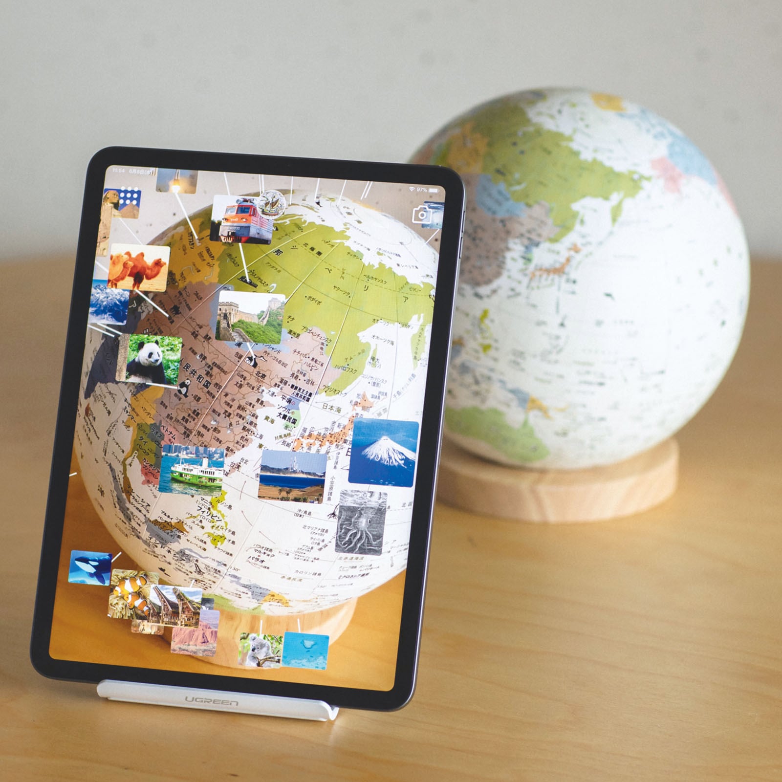 従来モデルよりも一回り大きい20cmで、国教と国名の表記がある本格的な地球儀のため、アプリがなくても地球儀として使用することができます。ゆがみのない正確な地図を表現するため、素材に紙を使用しております。
