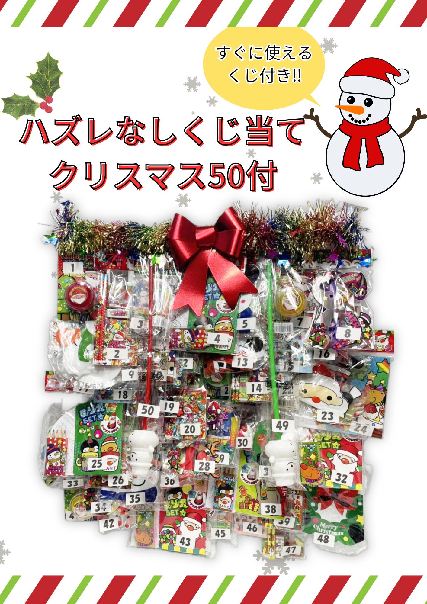 【クリスマス当てくじ・台紙】ハズレなしくじ当てクリスマス50付【くじあて 子供会 クリスマス会 プレゼント イベント サンタ玩具 雪だるま玩具】