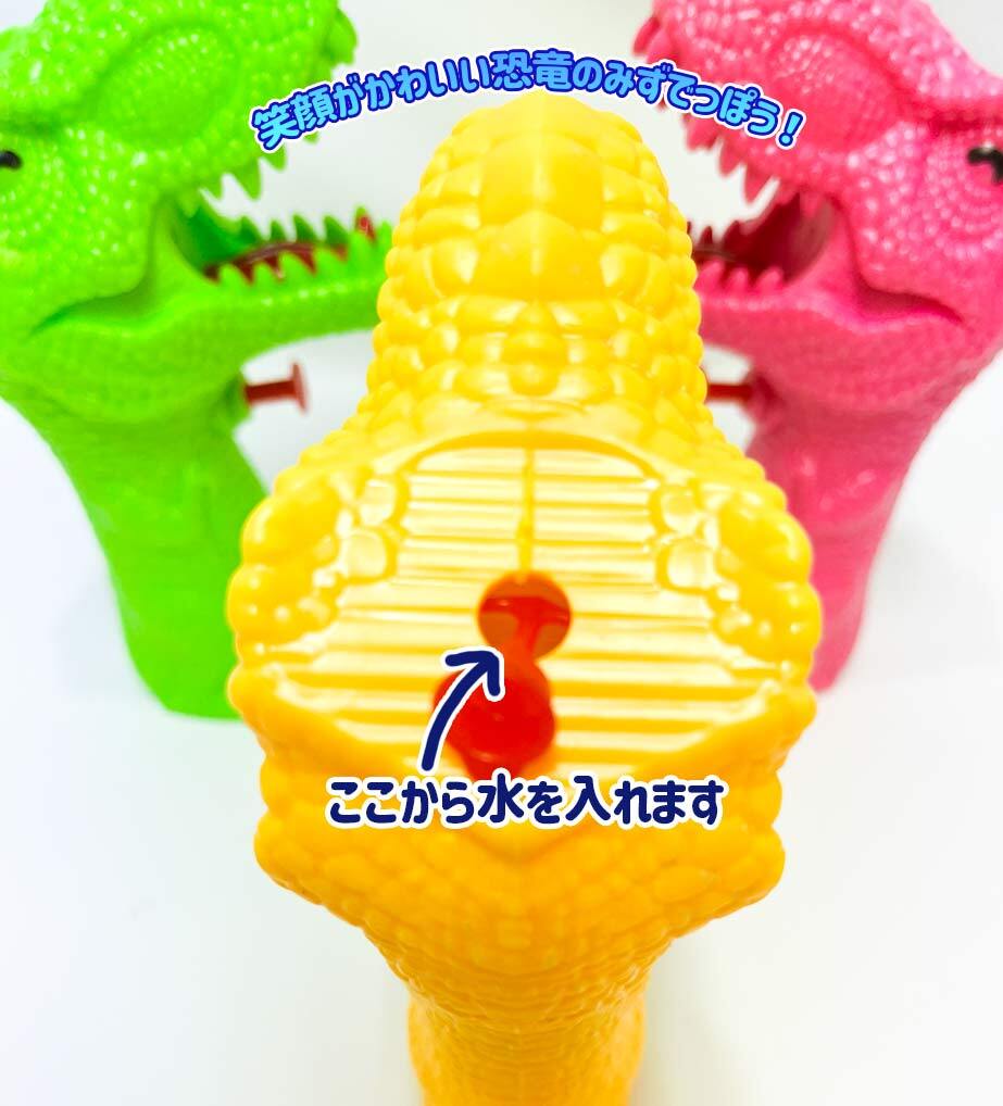 にっこり笑顔の恐竜が特徴の水ピストルです。
